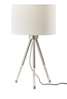 When it is time for bed, or you need some mood lighting in the living room, just turn on the soft LED light in the clear acrylic nightlight legs. The metal tripod base has a sleek, brushed steel finish and 10.75? sturdy footprint. A black & white fabric covered cord hangs down from the socket, turning a mechanical component into a fun, decorative accent.