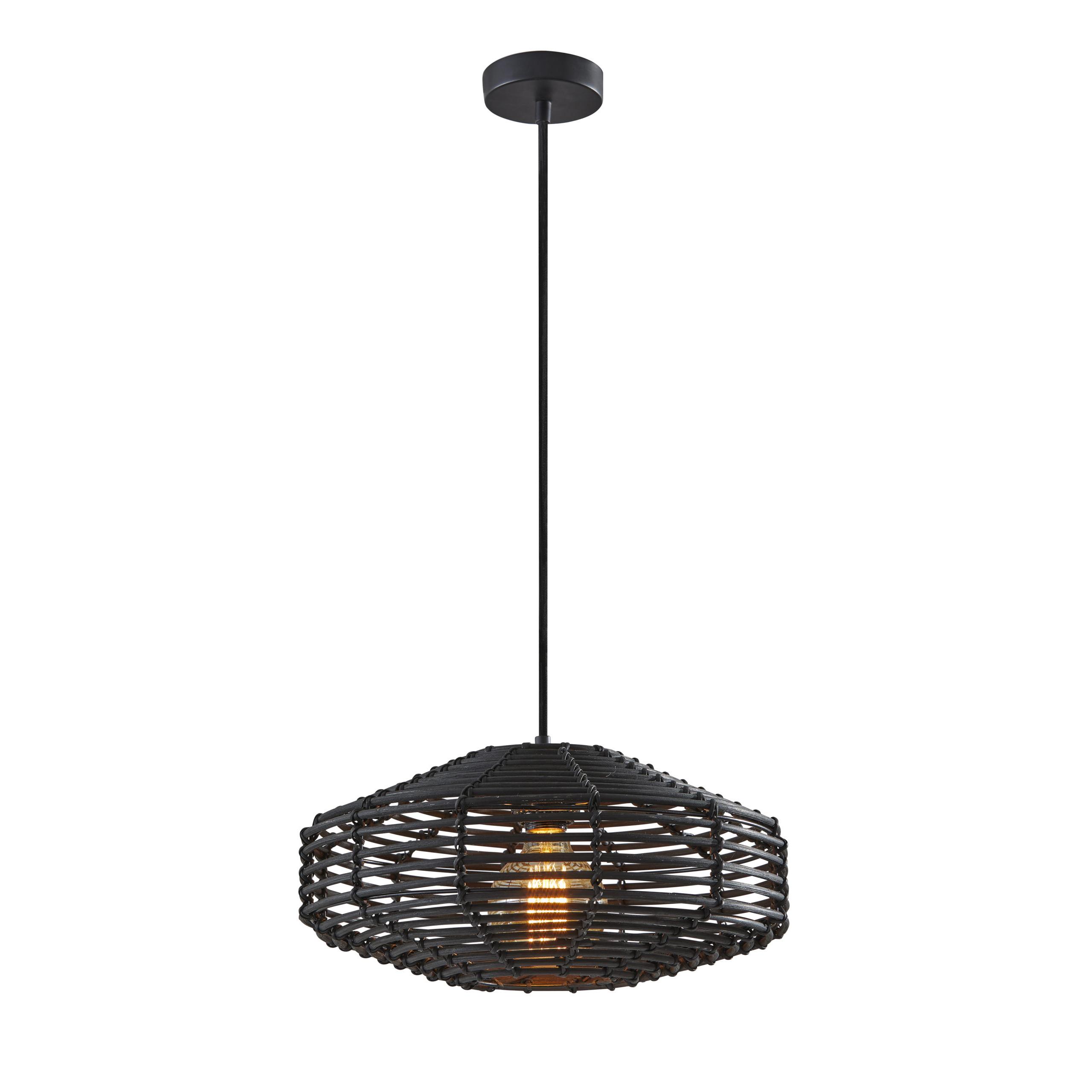 A stunning mix of natural materials, the Kingston Table Lamp is a great way to add some bohemian inspiration to a modern setting. A black rattan disc houses a globe shaped vintage bulb that is included with this shipment and adds even more decorative appeal to the look. Hang this pendant over the dining room table for the perfect mood lighting. A black fabric covered cord adds to the modern look that is finished off with a black metal canopy.Read More