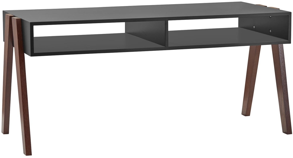 In the Laurel Coffee Table, mid-century modern and retro styling combine. A smooth black table top is accented by oak wood legs with a rich, walnut wood grain. Two inner cubbies provides double the amount of storage space.Read More
