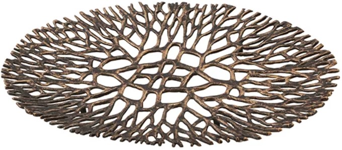 The Crestview Collection Antique Brass Tree Branch Plate is crafted from aluminum with a rich brass finish and intricately shaped into branches, weaving through each other to create a stunning decorative plate that is sure to add a touch of rustic luxury to any space.Read More