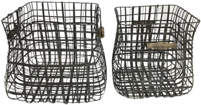 Set of 2 Clancy rustic metal baskets with wooden handles.Read More