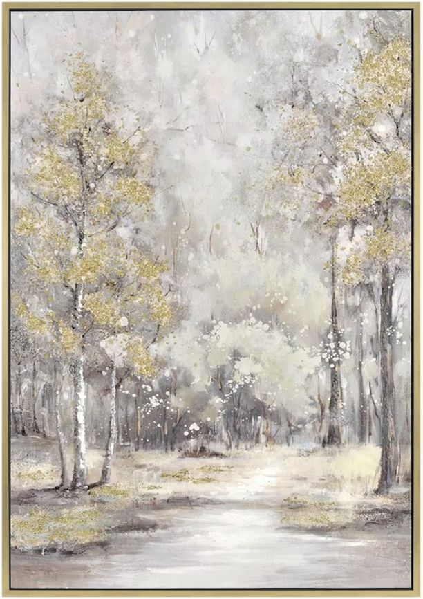 The Crestview Collection Elise Painting on Canvas with Gold Foil Embellishments walks you through a sun-dappled pathway lined on either side with aspen trees. The piece features leaves changing to yellow with the cool mountain air. Peace surrounds you as only the sounds of nature fill your ears.Read More