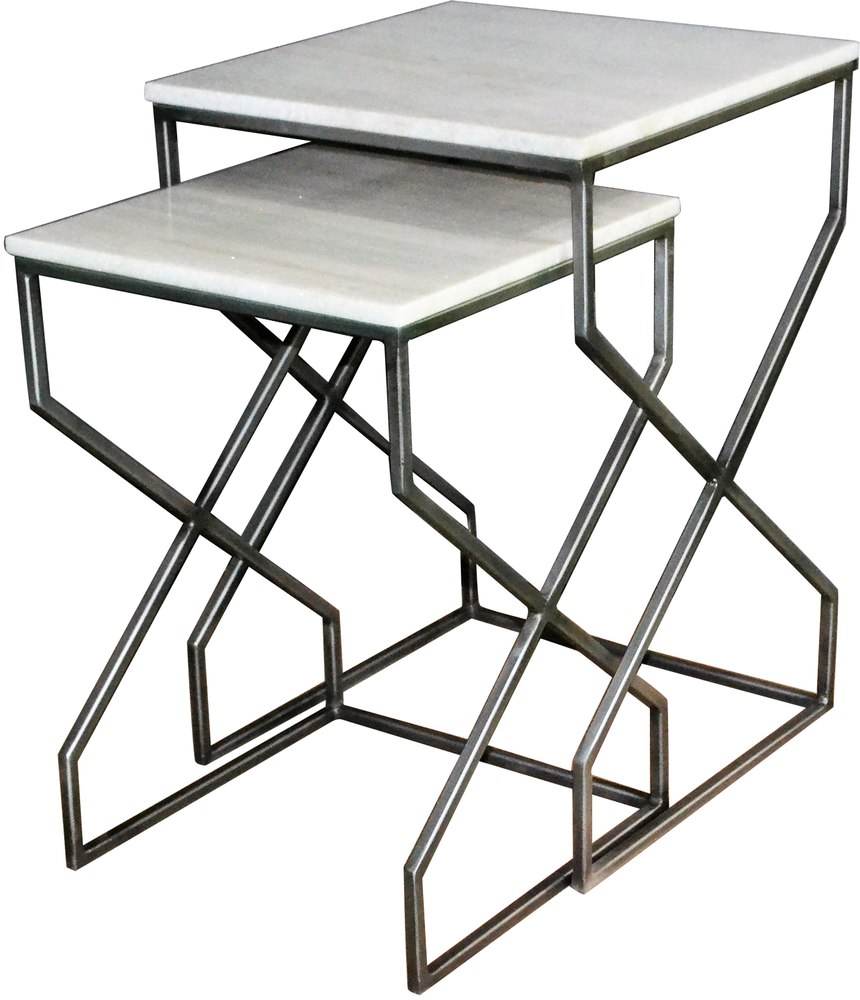 White & Gray 2 Piece white marble and iron legs side table set from Crestview Collection.