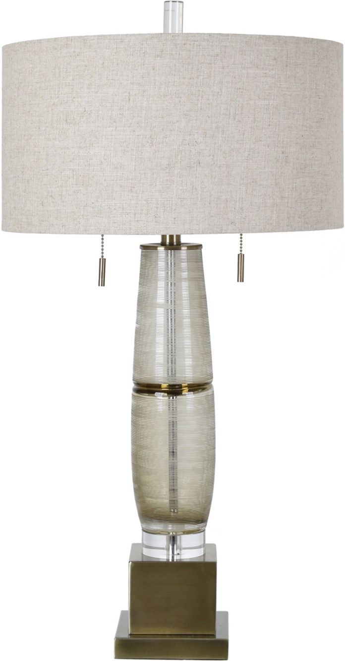 The Crestview Collection Lowery Table Lamp is constructed from glass with an antique finish and intricate details. Featuring a metal base with matching accents and pull chains, all with a rich brass finish, this table lamp is sure to add a dash of luxury to any space.Read More