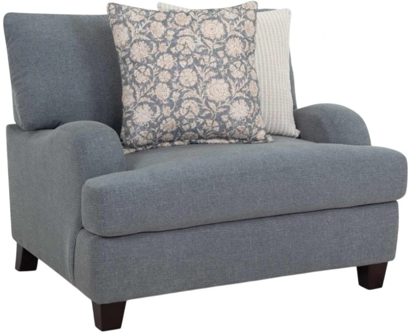 The 992 Laurel Chair and a Half offers timeless elegance with spacious comfort. Upholstered in durable gray-blue fabric, it includes a coordinating throw pillow for added warmth and charm. Solid wooden legs provide sturdy support, while the WOW Seating System and reversible cushions ensure lasting durability, support, and relaxation.Read More