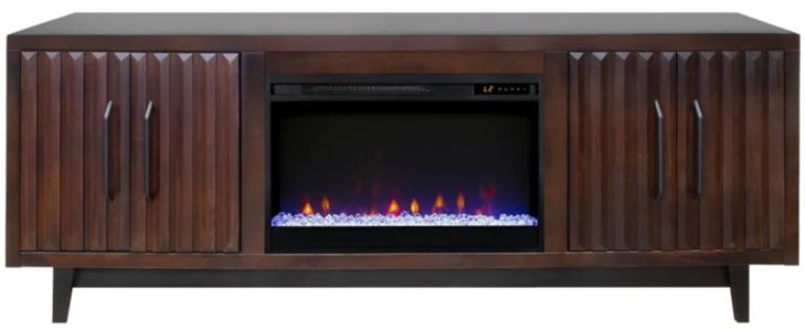 Sophisticated, modern style doesn't get better than the Radiance 75-inch fireplace TV stand. Artfully crafted from poplar solids and okume veneers, this showstopping entertainment center with a fireplace is available in two rich finishes and includes matte black hardware.Read More