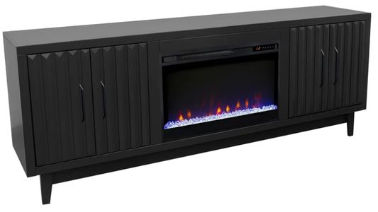 Sophisticated, modern style doesn't get better than the Radiance 75-inch fireplace TV stand. Artfully crafted from poplar solids and okume veneers, this showstopping entertainment center with a fireplace is available in two rich finishes and includes matte black hardware.Read More