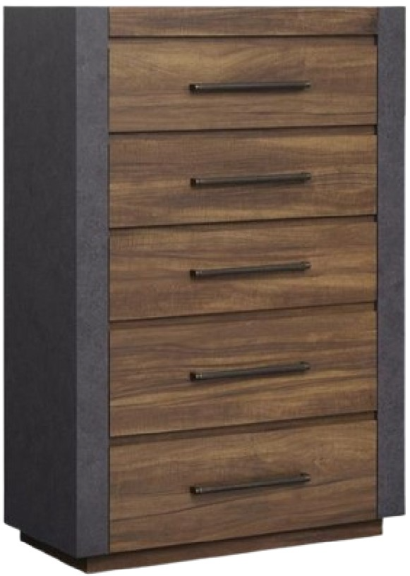 The Jensen collection embodies the raw, edgy appeal of modern industrial style, featuring a tavern brown finish paired with Verona bronze hardware for a rugged, utilitarian look. The case goods showcase the perfect balance of wood and aged metal laminate, creating a striking mixed-media effect with bold, masculine lines.Read More