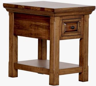 The Hill Crest chairside table features a rich brown wood finish, a single storage drawer, and a solid-wood floating top. Its beautiful design and quality craftsmanship make it a timeless addition to any living space.Read More