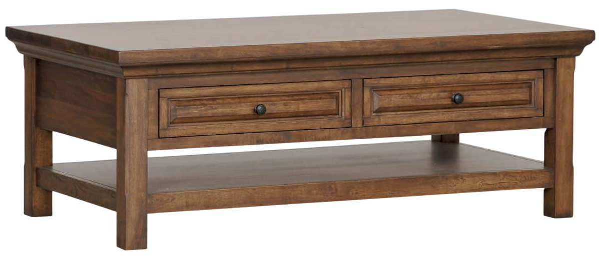 The Hill Crest cocktail table features a rich brown wood finish, double storage drawer, and a solid-wood floating top. Its beautiful design and quality craftsmanship make it a timeless addition to any living space.Read More