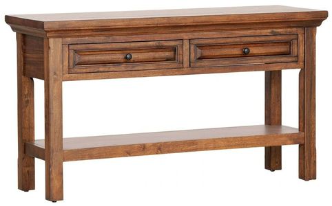 The Hill Crest sofa table features a rich brown wood finish, double storage drawer, and a solid-wood floating top. Its beautiful design and quality craftsmanship make it a timeless addition to any living space.Read More