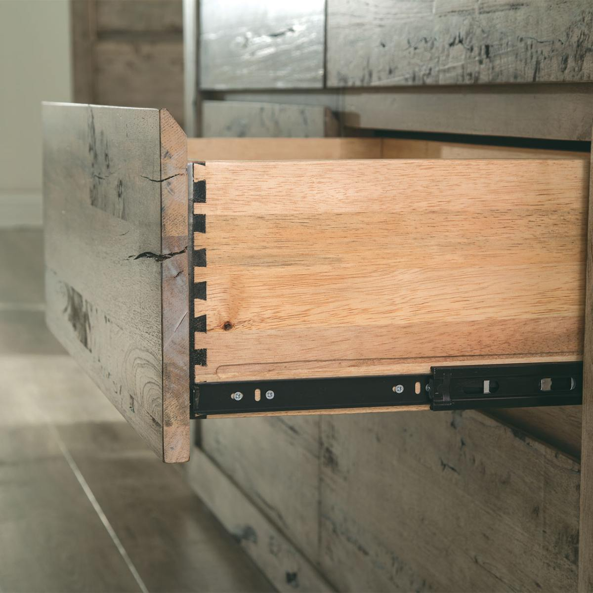 The simplistic beauty of the Renewal collection can be found in the story of Napa using reclaimed Mahogany, Mango and Mindi hardwoods in the design and production of this eco-friendly product. These beautiful woods are masterfully combined and finished in a weathered and natural driftwood finish that produces a style of furniture which is adaptable and comfortable in today’s modern homes. The reclaimed hardwoods feature natural wood markings that are found throughout the Renewal product line and these pure characteristics help to make each piece of Renewal a “one of a kind piece of art” for the home.