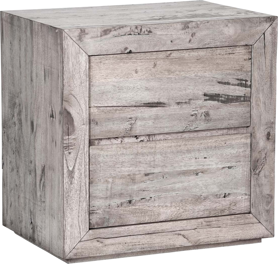 The Renewal nightstand presents a light, weather-worn finish over reclaimed mahogany, mango, and mindi woods. With drawers and a simple modern-rustic profile, it blends organic texture and practical bedside elegance.Read More