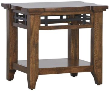 The Whistler Retreat chairside table features a warm, rustic brown finish that enhances natural wood grain. Its sturdy frame offers timeless charm and durability, perfectly complementing the Whistler Retreat collection for a cohesive, inviting home aesthetic.Read More