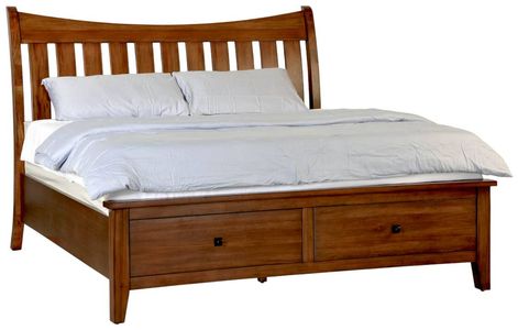 Add a stunning transitional bed to your room with the Birk Mahogany Bed. This bed is made from solid mahogany wood with a casual yet beautiful design. The gentle slope on the headboard is accentuated with the vertical slats that give this bed a light, airy feeling. The footboard features two storage drawers for you to store your out-of-season belongings. Overall, the warm wood finish adds a glowing and earthy feel that will resonate into a calm and soothing bedroom.