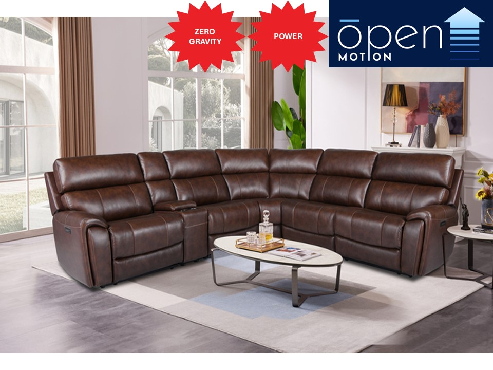 This power reclining sectional brings luxurious comfort and bold style to your living space. Wrapped in rich tobacco-colored faux leather, it features smooth power reclining, plush seating, and a convenient center console perfect for lounging, movie nights, and entertaining in elevated style.Read More