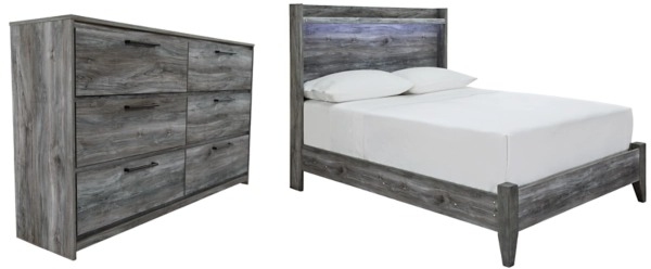 Includes full panel bed (headboard, footboard, rails) and 6-drawer dresser