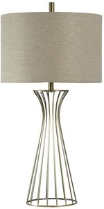 StyleCraft Classic Formed Metal Table Lamp with drum fabric shade and metal clear styreneRead More