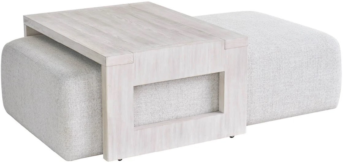 The river rock nesting cocktail ottoman offers versatile functionality with its two-piece design. Finished in a light and airy river rock, the upholstered ottoman provides comfortable seating, while the nesting tray table adds a convenient surface for drinks or display.Read More