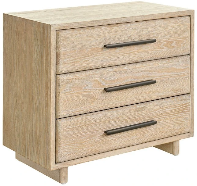 The desert three drawer nightstand offers bedside functionality with a bold, modern edge. Its light finish complements the clean lines and sleek hardware, providing a sophisticated and practical addition to your sleep sanctuary.Read More