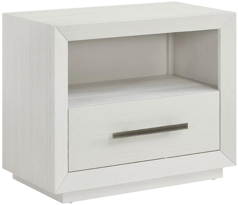 The shoreline nightstand combines a drawer with an open shelf space, all in a fresh shoreline finish with contemporary hardware and led lighting. This nightstand includes integrated electrical outlets with USB connections that enhance functionality while maintaining the collection's serene coastal style.Read More