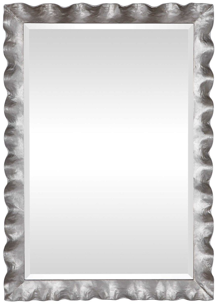 This mirror features a hand forged metal frame finished in silver leaf with an organic, scalloped edge design. A generous 1 1/4" bevel is added to this piece, which may be hung horizontal or vertical.Read More