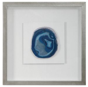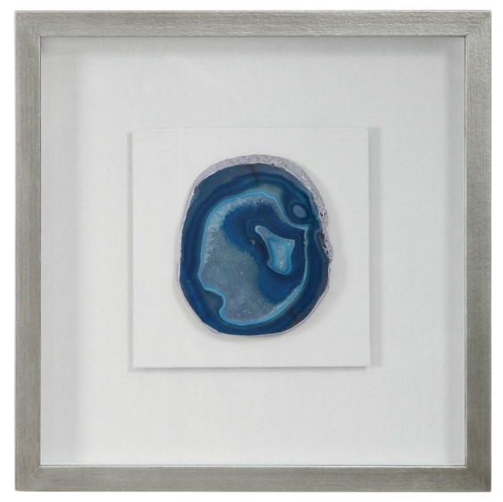Hand applied silver leaf finish showcases a striking blue agate stone with light blue veining