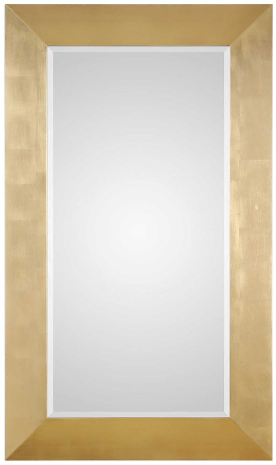 This Solid Pine Frame Features A Sleek Design Finished In A Hand Applied Gold Leaf. Mirror Features A Generous 1 1/4" Bevel. May Be Hung Horizontal Or Vertical.Read More