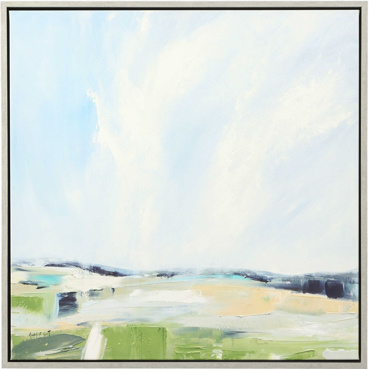 The For His Glory artwork displays an abstract landscape with chartreuse pastures and powder blue skies. This giclee on canvas is accented by a solid wood gallery frame with silver finish. Each canvas is proudly handcrafted and printed in the USA. Artwork by Michele Gort.Read More