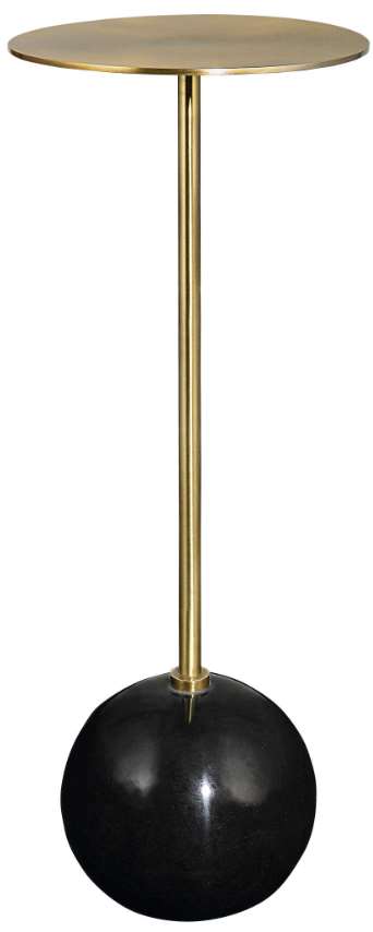 This sophisticated drink table goes wherever the party goes. An elegant honed black marble foot with natural white veining supports the iron top finished in brushed brass, perfect for holding a book or drink. Because of the natural characteristics of marble, each piece will have unique veining patterns.Read More
