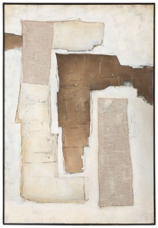 Interference hand painted canvas is a striking abstract mixed media artwork that blends warm shades of chocolate brown and taupe. A slim, black gallery frame completes the piece. Due to the handcrafted nature of this artwork, each piece may have subtle differences. May be hung horizontal or vertical.Read More