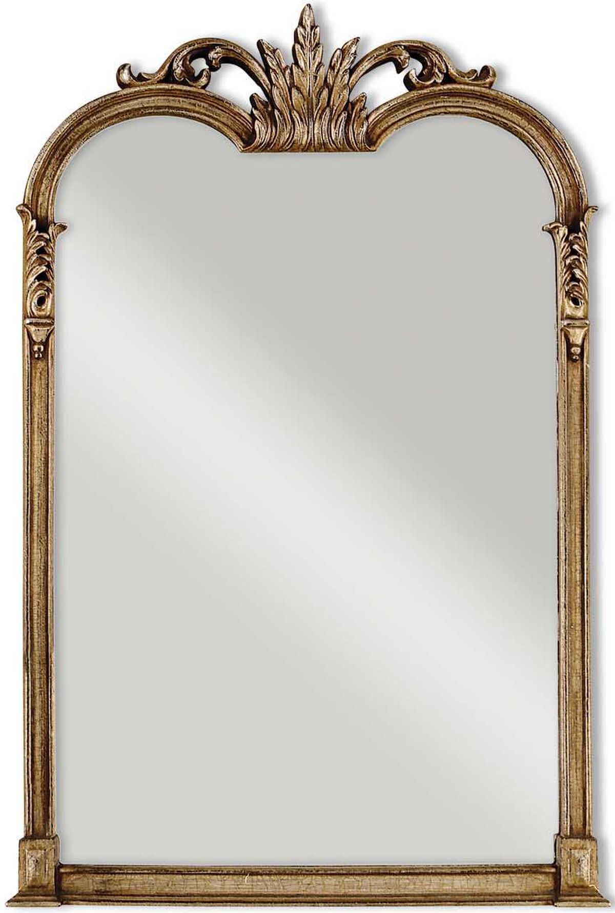 Mirror frame is finished in a champagne silver leaf