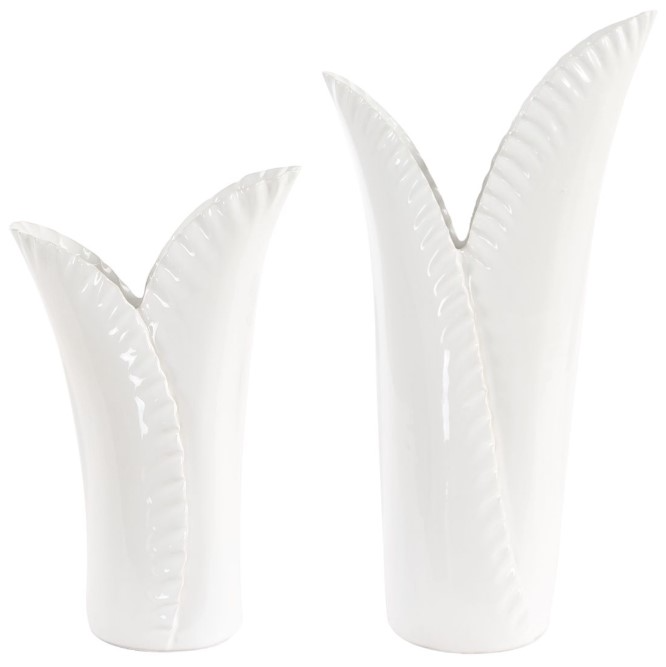 This set of two beautifully crafted white ceramic vases captures the delicate beauty of nature. Inspired by long elegant leaves found in nature. The smooth finish and delicately rippled edges highlight their refined design, making them perfect for showcasing your favorite flowers or as standalone art pieces.Read More