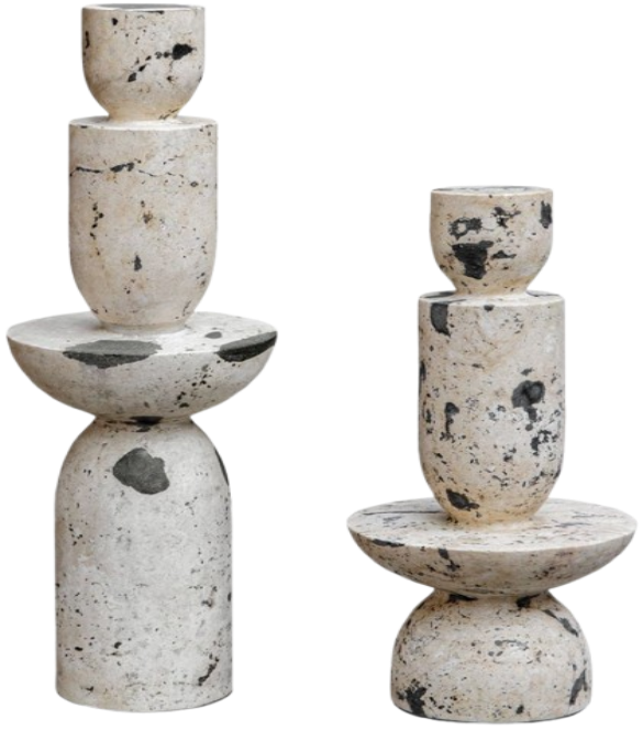 Inspired by the clean lines and bold feel of modern art, this set of two tower sculptures are handcrafted from natural white limestone with black accents. Each piece is a testament to minimalist elegance, blending sleek geometric forms with organic materials to create a striking visual impact.Read More