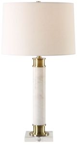 Crafted from white marble with subtle veining, this table lamp is displayed on a thick crystal foot, complemented by plated antique brass accents. A slightly tapered hardback shade in a crisp white linen fabric complements the piece.Read More