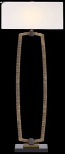The Relic Floor Lamp captures bohemian charm with its deeply antiqued gold finish with hand-carved textures along the unique parallel-style base. It is complemented by dark bronze accents and a black marble foot. The lamp is paired with an oval hardback white linen shade.Read More