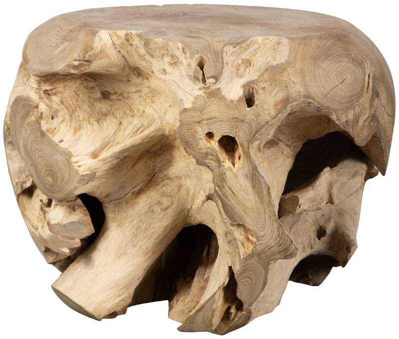 Formed by nature the Sola side table provides organic beauty and function in a natural bleached teak, serving as a decorative art piece while smoothed on top for functionality. Each will vary in size due to being uniquely handcrafted. Cracks and variations in grain are normal.Read More