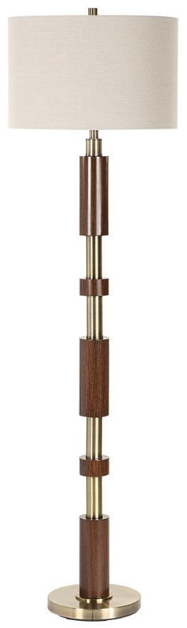 The Stacked Floor Lamp features a striking design with alternating wooden cylinders and brass plated details that exude a modern feel with Mid-Century elements. The round hardback drum shade is a crisp white linen fabric.Read More