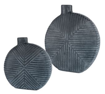 This set of vases is accented by contemporary geometric carving in aged black with off-centered openings, perfect for floral stems or placed among your other favorite accessories. It adds aesthetic design to your living room.Read More