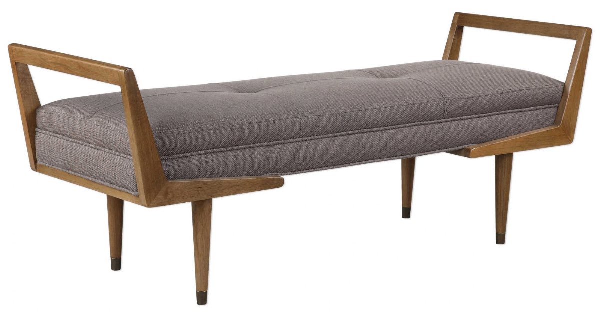 A bench for extra seating with a mid-century twist in its modern birch wood frame lightly finished in a smooth oak finish, with a tufted bench seat in a woven taupe gray fabric. It can create a cozy atmosphere, and act as accent pieces that complement the overall décor.Read More